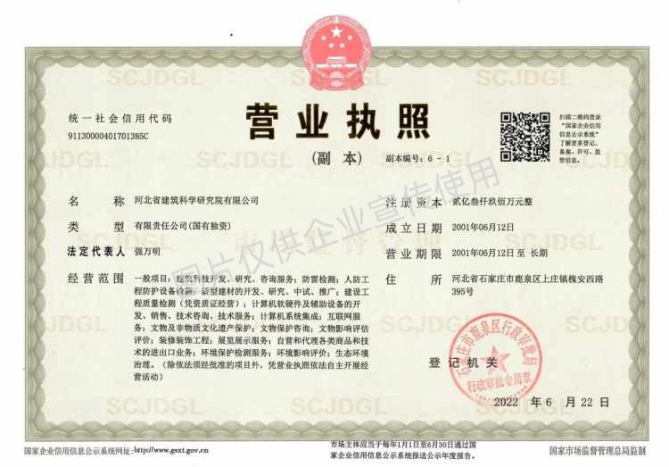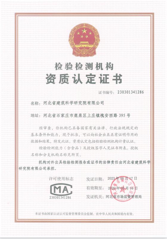 河北省建筑科學研究院有限公司人防工程檢測機構證明